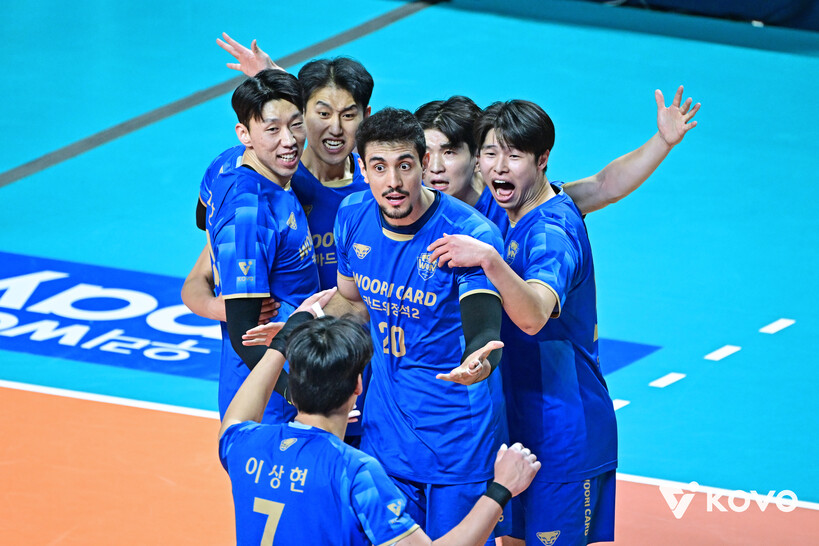 '봄 배구 포기란 없다.' 남자프로배구 우리카드가 삼성화재와 리턴 매치에서 웃었다.
