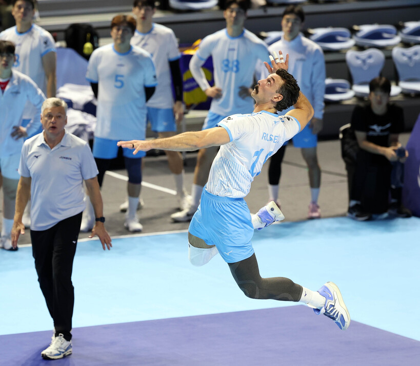 2위를 유지했지만 대한항공과 격차가 승점3 차이로 벌어졌다. 대한항공 승리 주역은 '주포' 러셀(미국)이 됐다. 그는 이날 두팀 합쳐 가장 많은 25점을 올렸다.