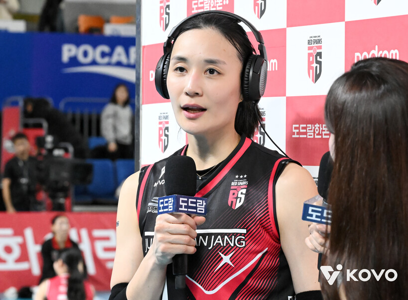 지난 9월 전남 여수에서 열린 '2025 여수·NH농협컵' 프로배구대회를 통해 해설위원으로 데뷔 무대를 가졌고 10월 18일 막을 올린 2025-26시즌 진에어 V-리그를 선수가 아닌 해설위원으로 함께 하고 있다. 지난달(11월) 26일 IBK기업은행과 흥국생명 경기가 열린 화성체육관에서 만난 표승주 해설위원(이상 표 위원)은 이동근 아나운서와 함께 중계방송 준비를 하며 꼼꼼하게 경기 기록지를 살폈다.