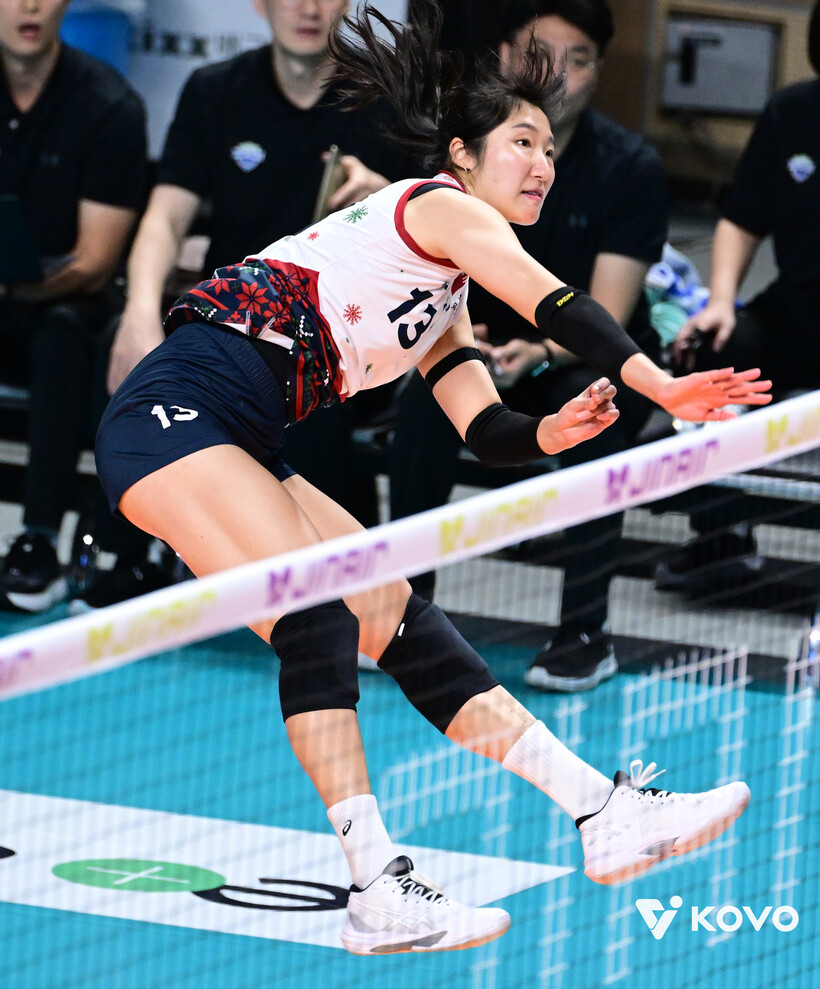 한편 현대건설 정지윤은 3경기 만에 다시 코트로 돌아와 1~2세트 선발 아웃사이드 히터 한자리로 나왔다. 그는 공격으로 3점을 올렸다.