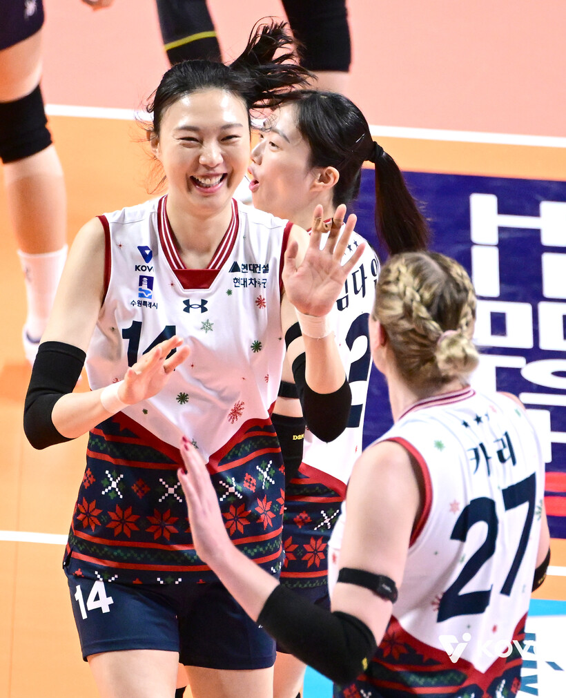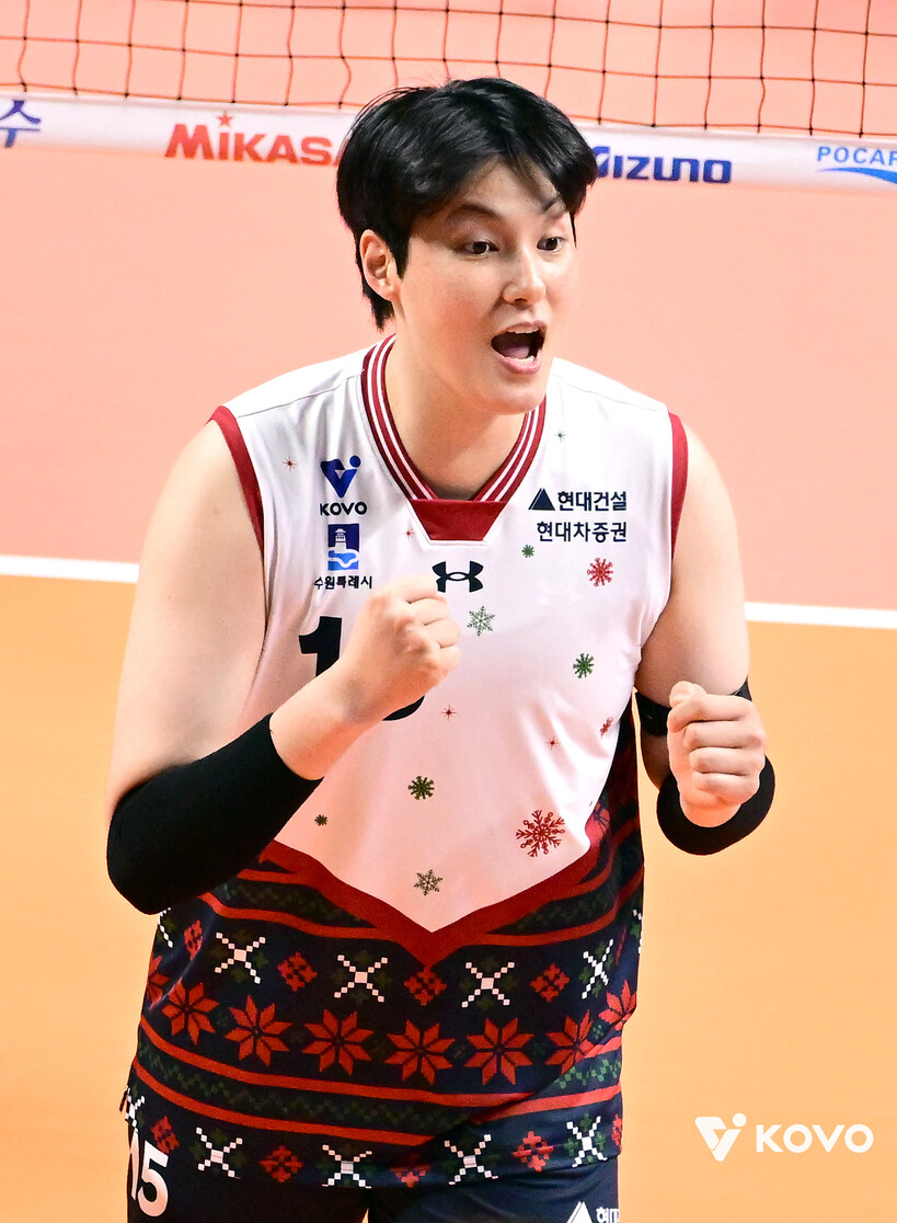 현대건설은 이날 높이에서 우위를 보였다. 팀 블로킹 숫자에서 15-2로 크게 앞섰다.
