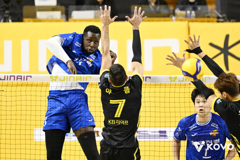 KB손해보험에선 비예나(스페인)가 16점, 야쿱(바레인)이 10점, 나경복이 8점을 각각 올렸으나 팀 패배를 막지 못했다.