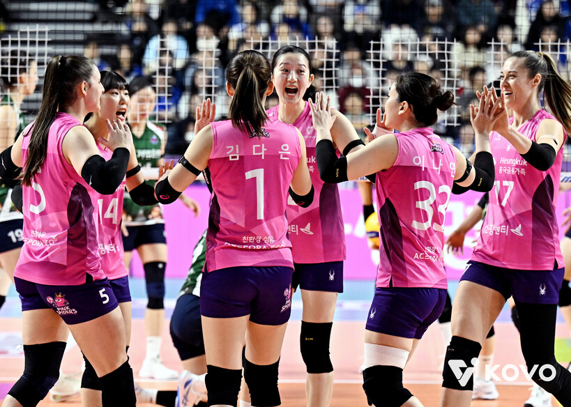 IBK기업은행이 빅토리아 공격과 킨켈라의 블로킹으로 추격에 나섰지만 흥국생명은 리드를 내주지 않았다. 정윤주가 상대 공격 흐름을 끊는 가로막기로 22-15를 만들며 세트 승기를 잡았다.