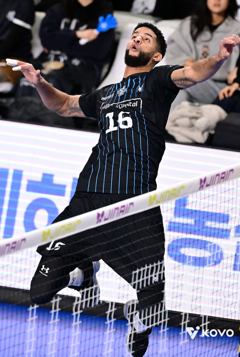 레오나르두 카르발류(브라질) 감독이 물로나고 하현용 코치의 감독 대행 체제로 첫 경기를 치른 KB손해보험에선 나경복이 21점, 비예나(스페인)가 17점을 각각 올렸으나 역전패로 빛이 바랬다.