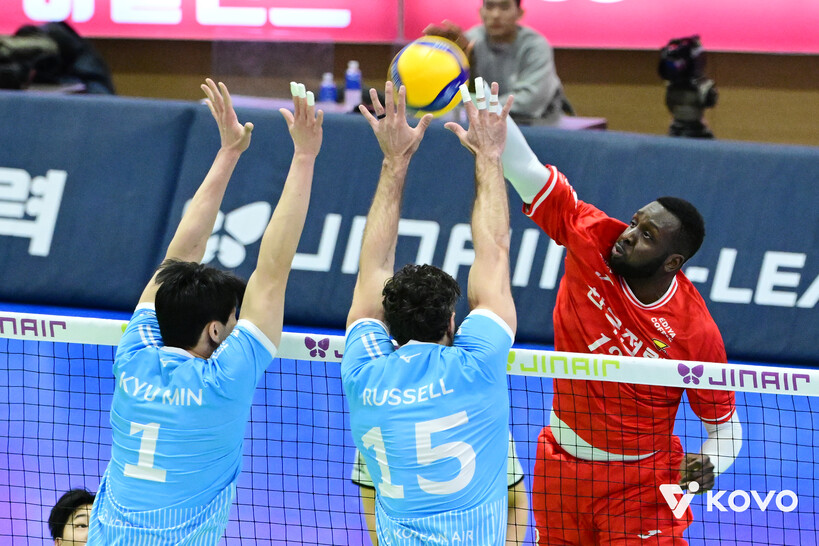 정한용과 임동혁이 각각 11점씩을 올렸으나 승리와 인연이 닿지 않았다. '주포' 러셀(미국) 부진이 컸다. 러셀은 이날 3점에 묶였고 범실도 5개를 기록했다. 공격성공률도 15.38%로 낮았다.
