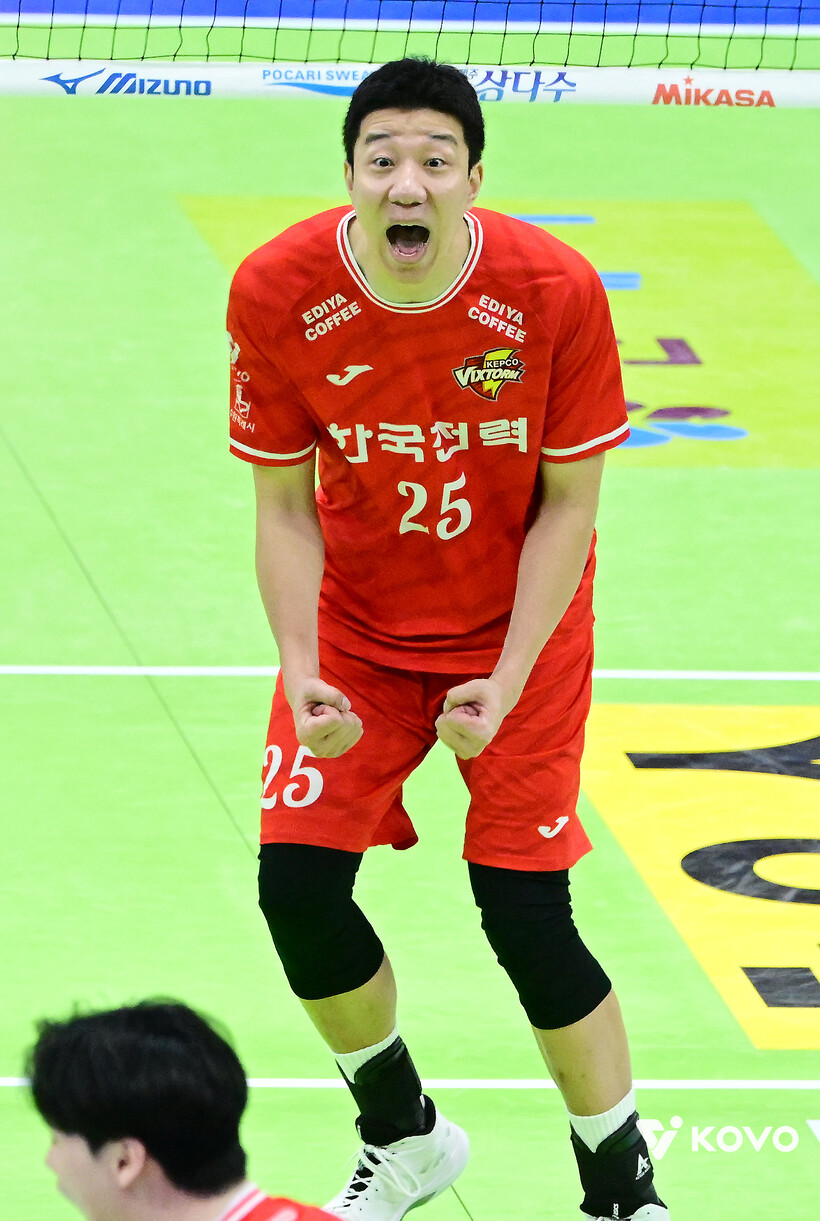남자프로배구 한국전력이 접전 끝에 귀중한 승수 하나와 승점2를 챙겼다. 한국전력은 23일 수원체육관에서 삼성화재와 2025-26시즌 진에어 V-리그 3라운드 홈 경기를 치렀다. 풀세트까지 가는 승부 끝에 3-2(27-29 25-19 23-25 25-15 19-17)로 이겼다.