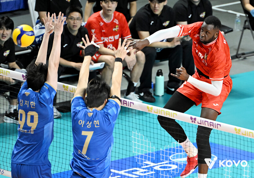한국전력은 베논(캐나다)이 '주포' 노릇을 잘했다. 두팀 합쳐 가장 많은 32점을 올렸다. 그는 블로킹 3개, 서브 에이스 3개, 후위 공격 12개로 트리플 크라운(개인 1호, 시즌 4호, 역대 279호)도 달성하는 겹경사를 누렸다.