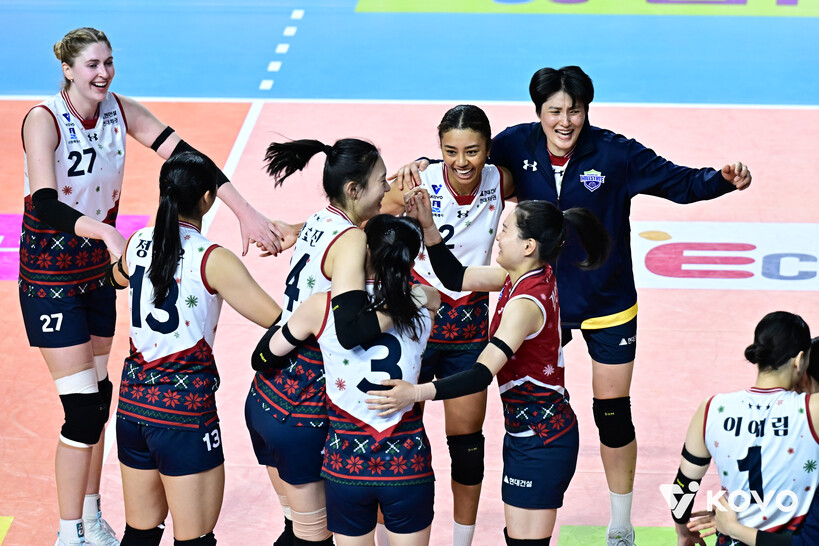 라운드 마지막과 처음을 모두 승리로 장식했다. 여자프로배구 현대건설이 연승을 8경기째로 늘렸다. 현대건설은 31일 인천 삼산체육관에서 열린 흥국생명과 2025-26시즌 진에어 V-리그 4라운드 첫 경기를 풀세트까지 가는 접전 끝에 3-2(25-20 19-25 25-18 15-25 15-10)로 이겼다.
