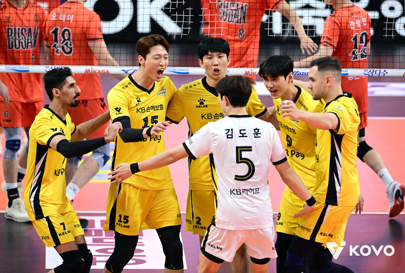 KB손해보험은 1. 2세트 연달아 세트 후반 상대 추격을 잘 뿌리쳤다. 1세트 22-22 상황에서 상대 서브 범실에 이어 차영석이 디미트로프가 시도한 후위 공격을 가로막아 24-22로 세트 포인트를 앞뒀다. OK저축은행이 한 점을 만회했지만 다음 랠리에서 비예나 세트 승부를 결정하는 후위 공격에 성공했다.