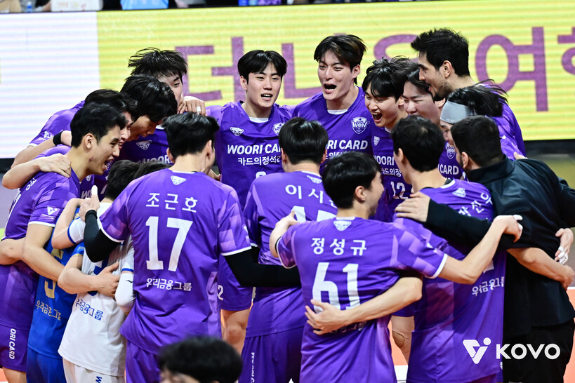 우리카드는 2일 부산 강서체육관에서 OK저축은행과 치른 2025-26시즌 진에어 V-리그 4라운드 원정 경기에서 풀세트까지 가는 접전 끝에 3-2(22-25 26-28 25-22 26-24 15-8)로 이겼다. 우리카드는 이날 승리로 4연패에서 벗어났고 6위 제자리를 지켰으나 7승 12패(승점21)가 됐다,
