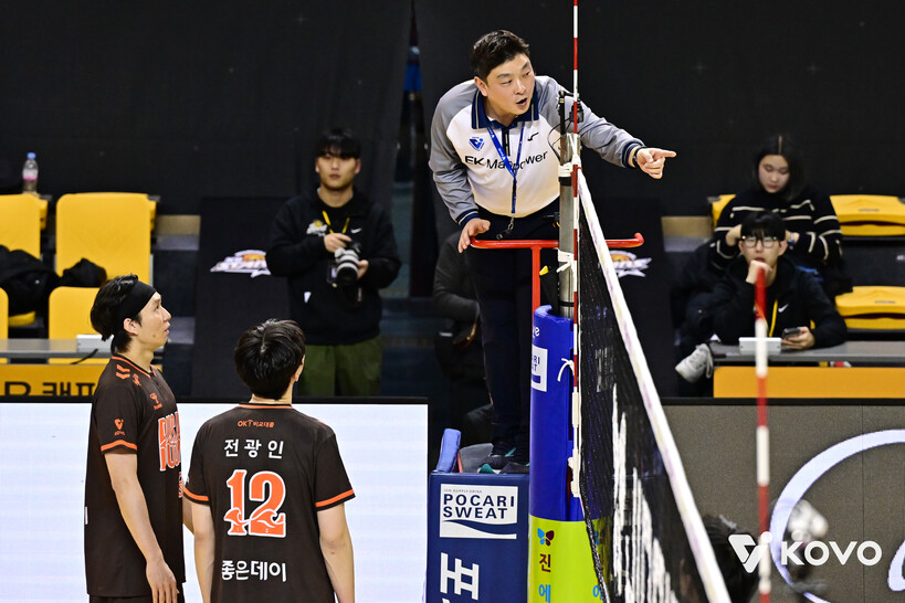 "부심에게 물어보니 자신이 실수를 했다고 인정하더라." 21일 의정부 경민대체육관에선 2025-26시즌 진에어 V-리그 4라운드 남자부 KB손해보험과 OK저축은행 경기가 열렸다.