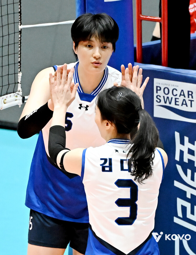 김희진은 지난 시즌 30경기(53세트)에 출전했는데 2블로킹에 그쳤다. 현대건설 이적 후 첫 공식 무대였던 지난 9월 전남 여수에서 열린 2025 여수·NH농협컵 프로배구대회에선 4경기(16세트)에 나와 1블로킹을 기록했다.