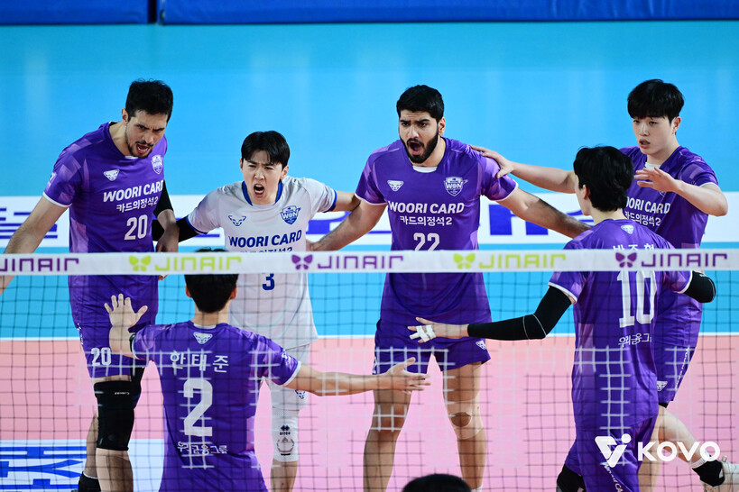 우리카드는 아라우조(브라질)가 두팀 합쳐 가장 많은 22점을 올렸고 김지한과 알리(이란)가 각각 16, 14점을 기록하는 등 공격 삼각편대가 제몫을 했다.