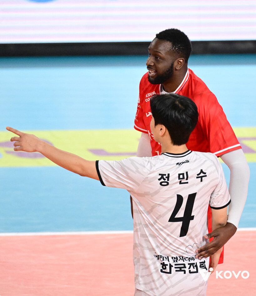 한국전력은 베논(캐나다)이 37점, 김정호가 16점, 두 미들 블로커인 무사웰(파키스탄)과 신영석이 4블로킹 포함 28점을 합작했으나 팀 패배로 빛이 바랬다.