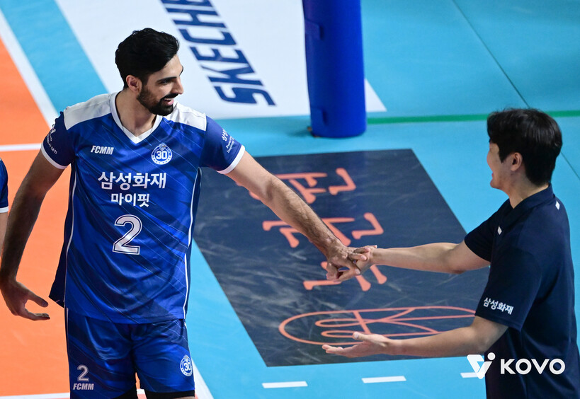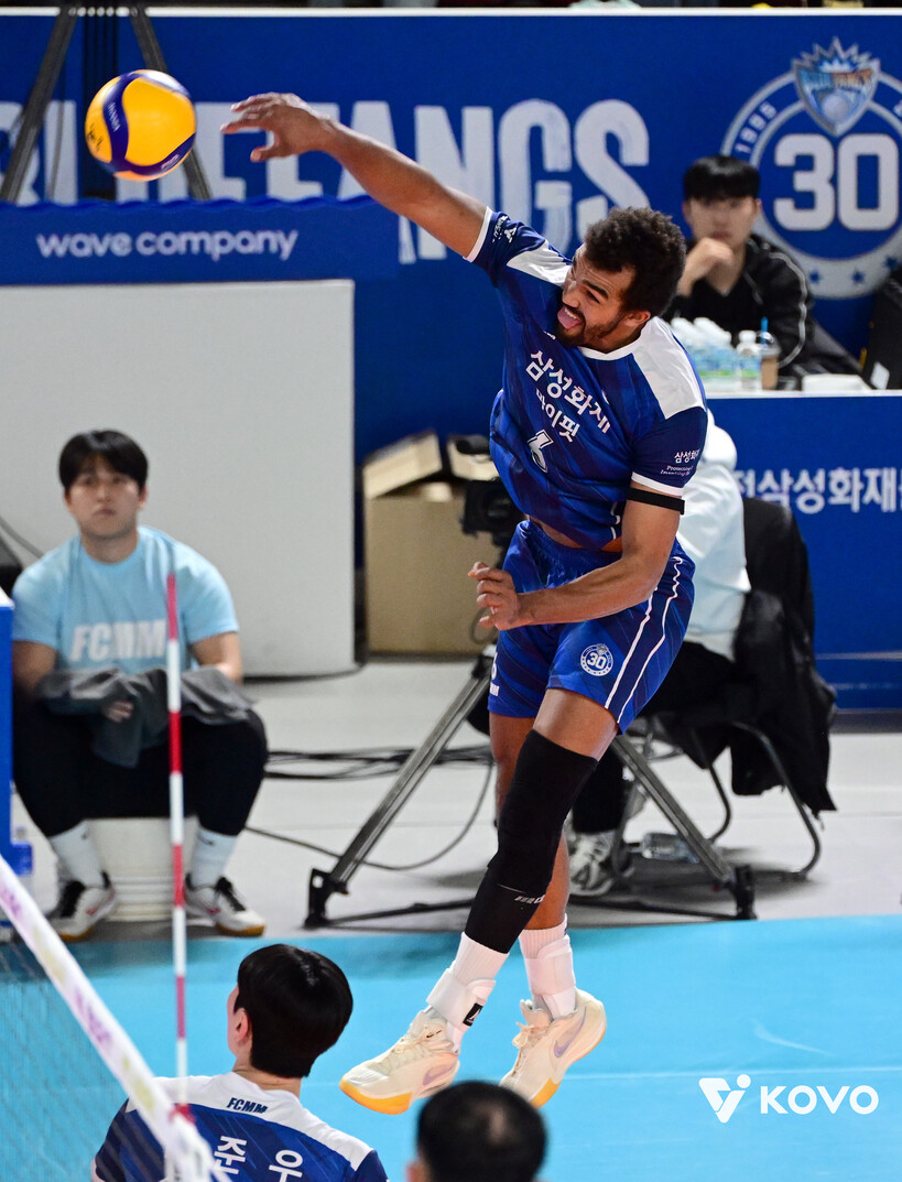남자프로배구 삼성화재가 안방에서 한국전력 연승 행진에 제동을 걸었다. 삼성화재는 10일 대전 충무체육관에서 한국전력과 2025-26시즌 진에어 V-리그 4라운드 홈 경기를 치렀다.