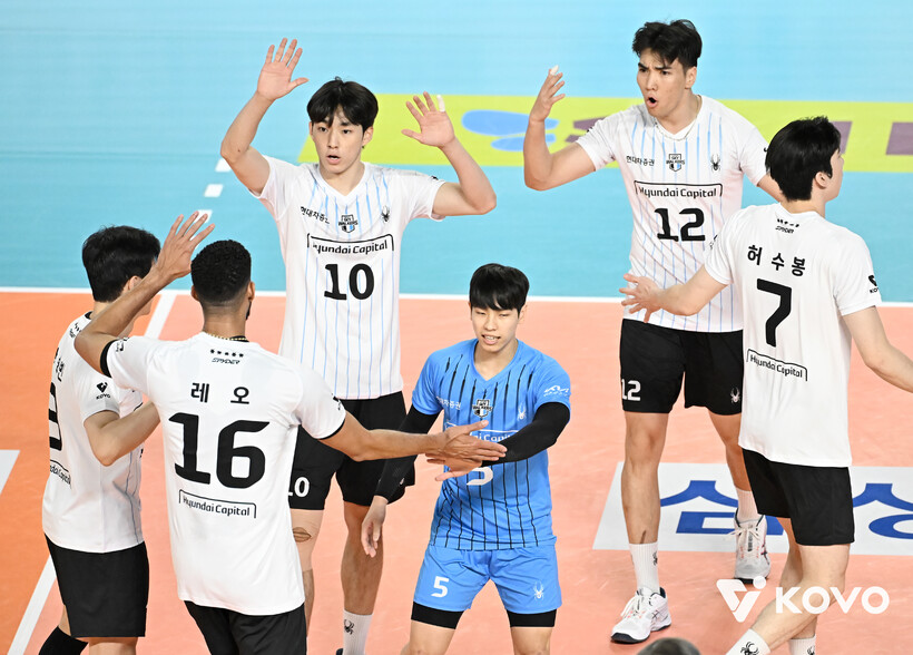 남자프로배구 현대캐피칼이 '주포' 레오(쿠바)를 앞세워 원정길에서 귀중한 승점3과 승수 하나를 더했다. 현대캐피탈은 25일 대전 충무체육관에서 열린 삼성화재와 2025-26시즌 진에어 V-리그 원정 경기에서 세트 스코어 3-1(25-17 25-19 20-25 25-23)로 이겼다.