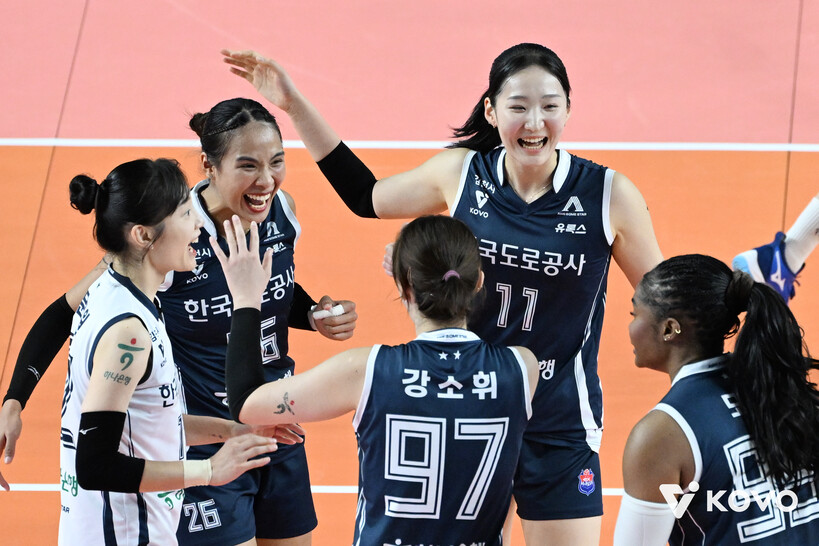 여자프로배구 한국도로공사가 연승 질주를 이어갔다. 한국도로공사는 23일 김천체육관에서 열린 2025-26시즌 진에어 V-리그 2라운드 GS칼텍스와 홈 경기를 세트 스코어 3-1(25-12 29-27 26-28 25-21)로 이겼다.