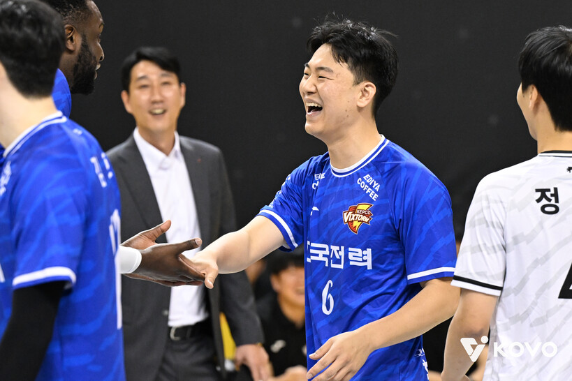 권 감독이 꼽은 또 다른 승리 요인은 서브 공략이다. 그는 "상대 세터 황택의가 워낙 잘하는 선수라 '연결을 좀 더 힘들게 하자'고 선수들에게 주문했다. 서브를 강하게 넣고 신영석과 에디 등 미들 블로커가 항상 2블록으로 따라 붙게 했는데 이 부분이 효과를 본 것 같다"고 설명했다.