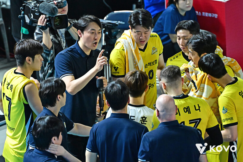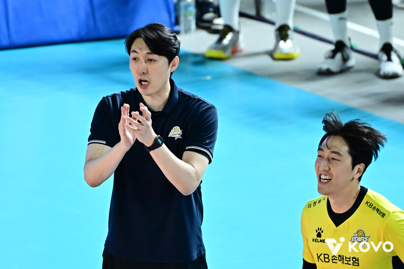 남자프로배구 KB손해보험 레오나르두 카르발류(브라질) 감독이 지휘봉을 내려놓은 뒤 감독 대행을 맡은 하현용 코치가 마침내 대행 후 첫 승을 신고했다. KB손해보험은 7일 대전 충무체육관에서 열린 삼성화재와 2025-26시즌 진에어 V-리그 4라운드 원정 경기에서 짜릿한 역전승을 거뒀다.