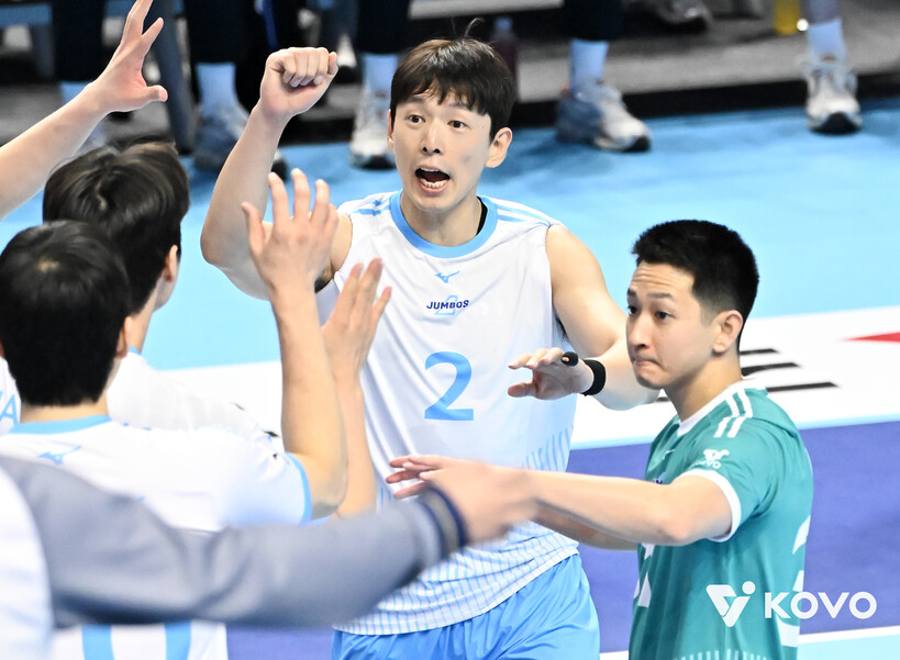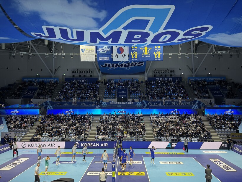대한항공은 23일 인천 계양체육관에서 한국전력을 상대로 2025-26시즌 진에어 V-리그 팀의 첫 경기이자 홈 개막전을 치렀다. 대한항공은 정지석과 러셀(미국) 쌍포를 앞세워 베논(캐나다)과 김정호가 버틴 한국전력에 세트 스코어 3-1로 이겼다.