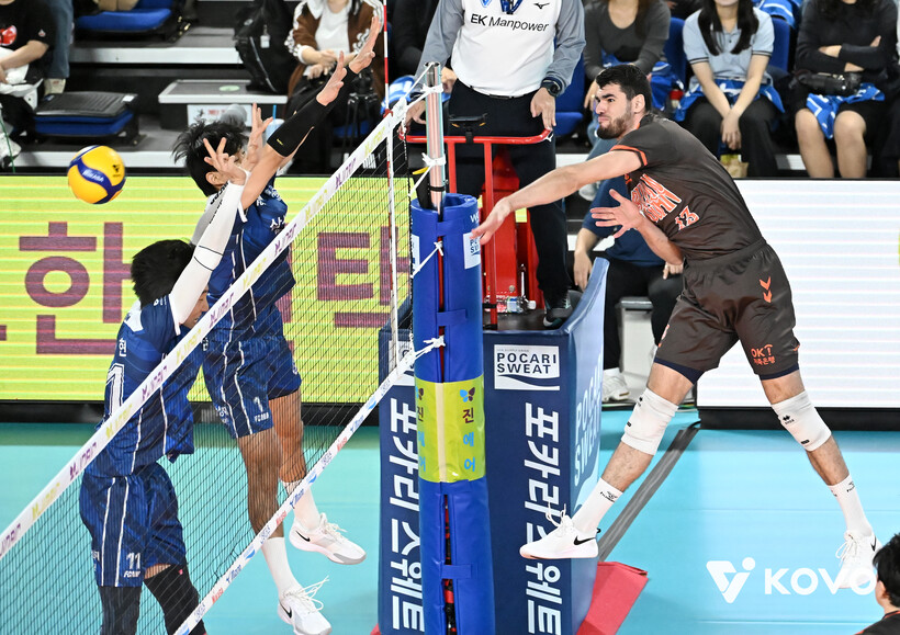 남자프로배구 OK저축은행이 2025-26시즌 진에어 V-리그 첫 경기에서 진땀승을 거뒀다. OK저축은행은 21일 대전 충무체육관에서 열린 삼성화재와 원정 경기에서 풀세트까지 가는 접전 끝에 3-2로 이겼다.