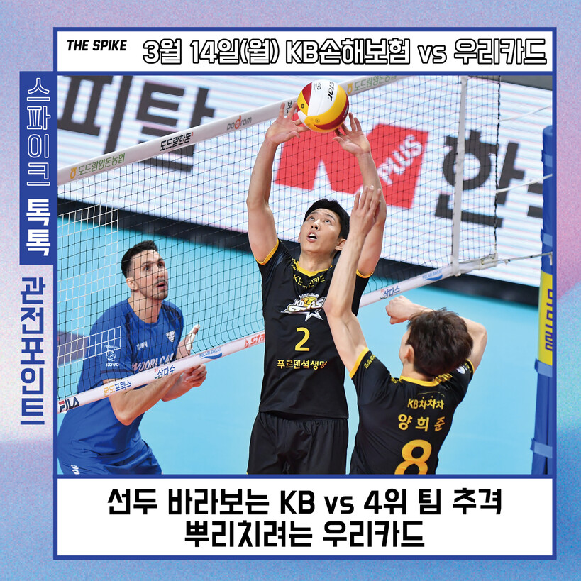 선두 바라보는 KB vs 4위 팀 추격 뿌리치려는 우리카드