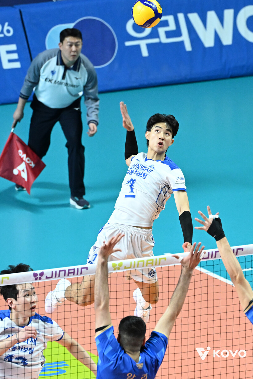 삼성화재가 22-18로 달아나자 우리카드 벤치는 더블 스위치(교체) 카드를 꺼냈다. 세터 한태준을 아포짓 김동영, 아라우조를 세터 이승원으로 각각 바꿨다. 삼성화재는 김우진의 오픈 공격이 통해 24-20을 만들며 세트 포인트를 앞뒀다. 우리카드는 김동영의 서브에이스를 앞세워 추격했지만 22-24 상황에서 김동영이 시도한 서브가 라인을 벗어나면서 삼성화재가 웃었다.