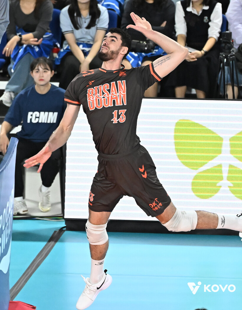 디미트로프 32점 OK저축은행, 삼성화재 꺾고 시즌 첫 경기 승리