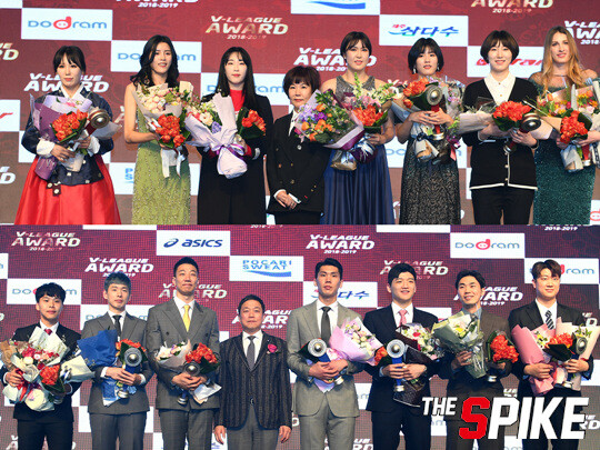 한국배구연맹(KOVO)이 1일 더케이호텔에서 개최한 2018~2019 도드람 V-리그 시상식에서 올 시즌 최고의 활약을 펼친 선수 일곱 명(세터, 윙스파이커 2명, 아포짓 스파이커, 미들블로커 2명, 리베로)이 선정됐다.