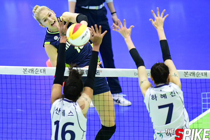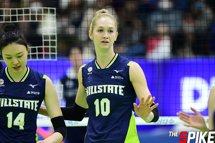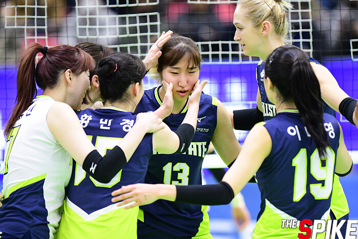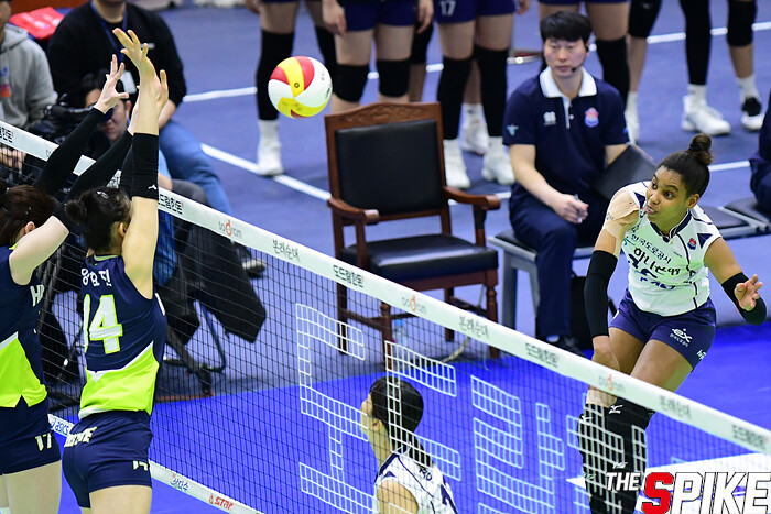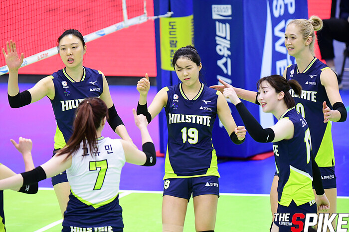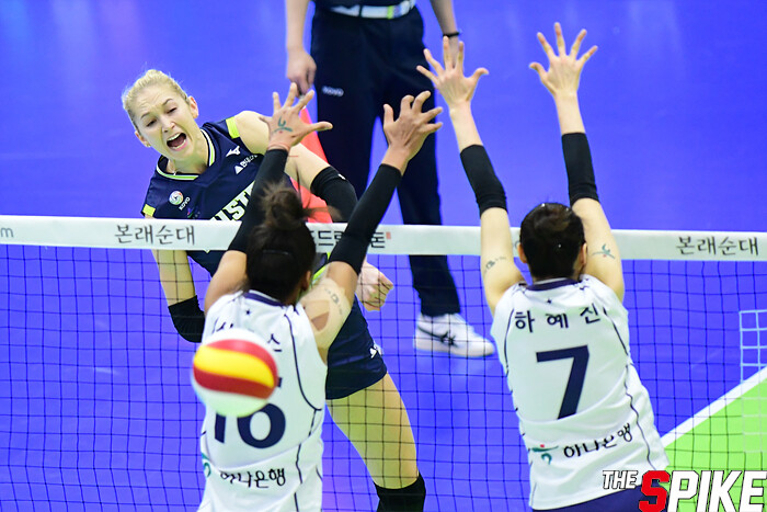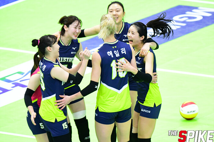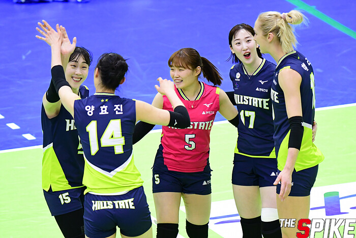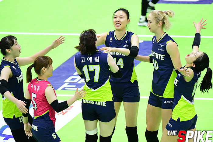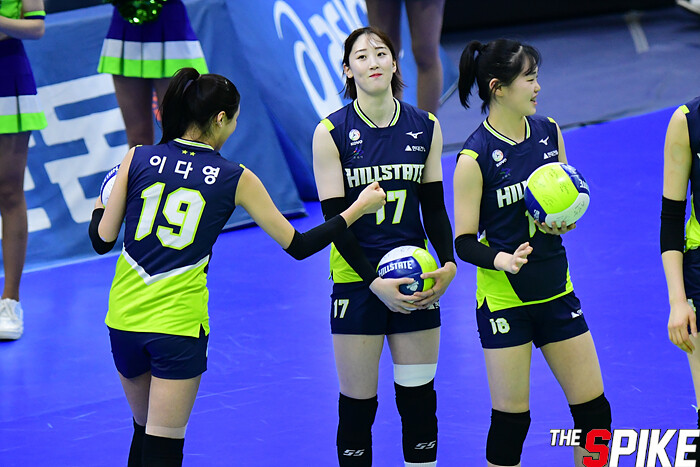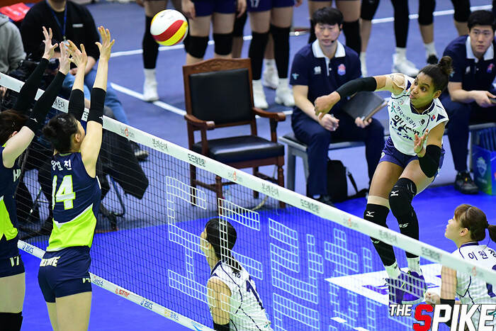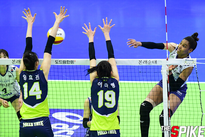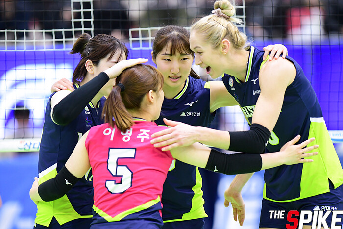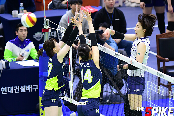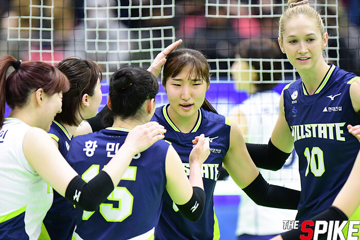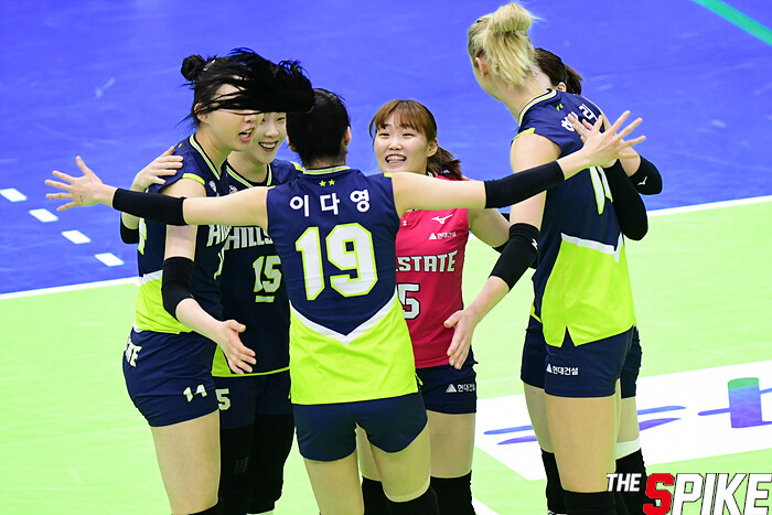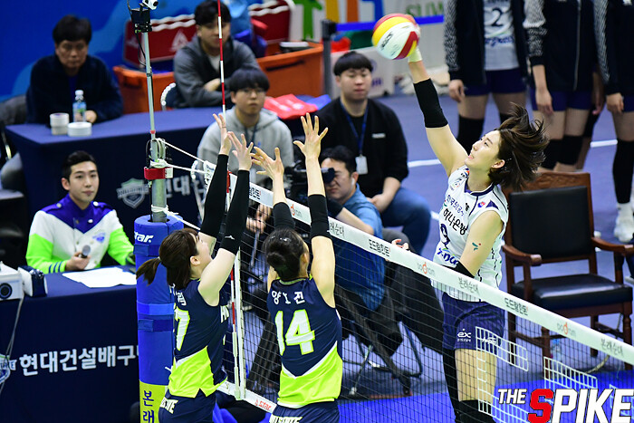 [더스파이크=수원/박상혁 기자] 11일 수원실내체육관에서 열린 도드람 2019-2020 V-리그 여자부 현대건설과 한국도로공사의 경기에서 현대건설이 세트 스코어 3-0 (25-22, 25-17, 25-20) 으로 한국도로공사에 승리했다. 현대건설과 한국도로공사 경기 화보.