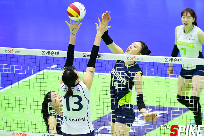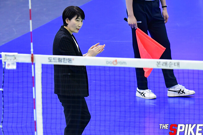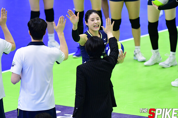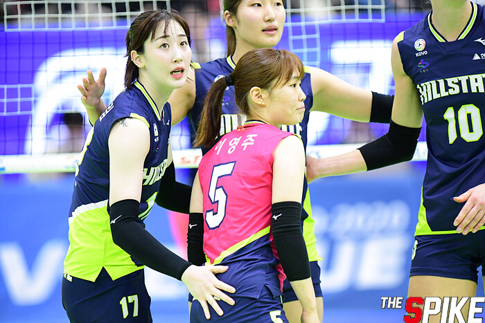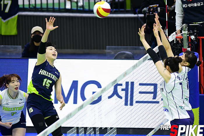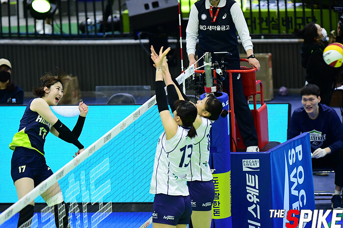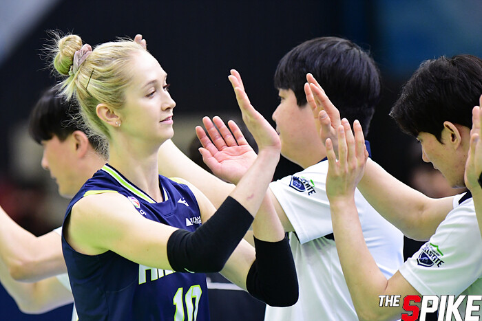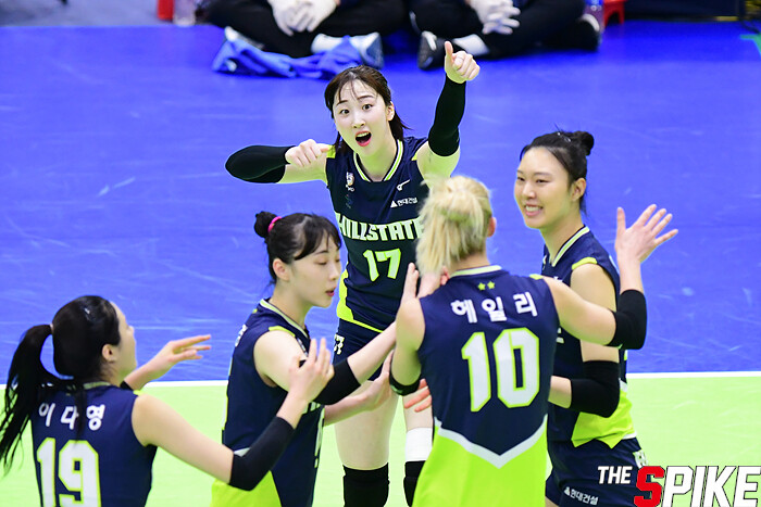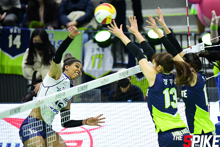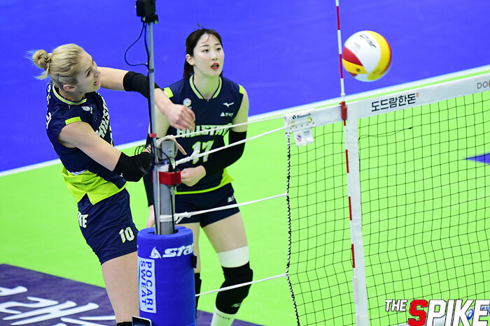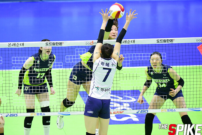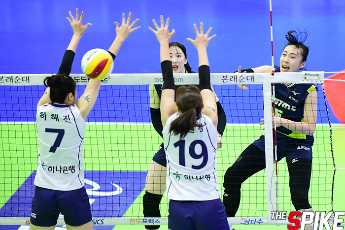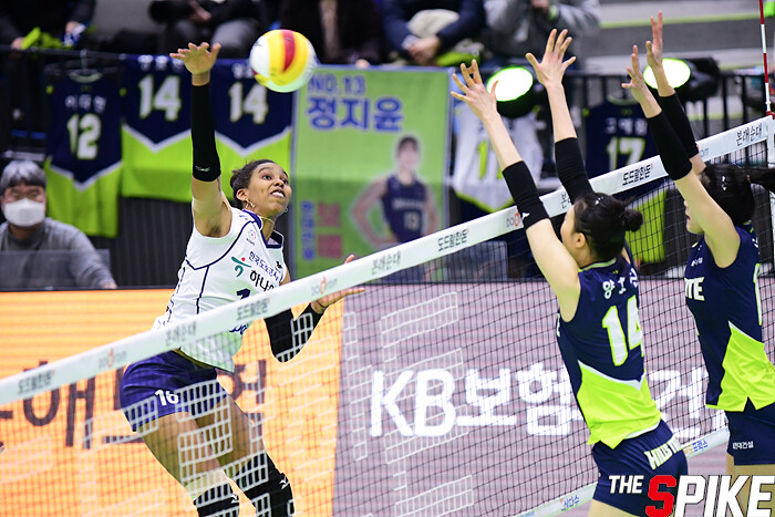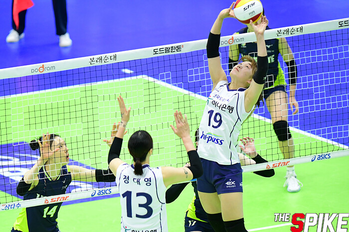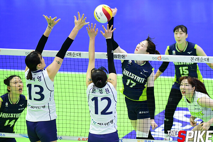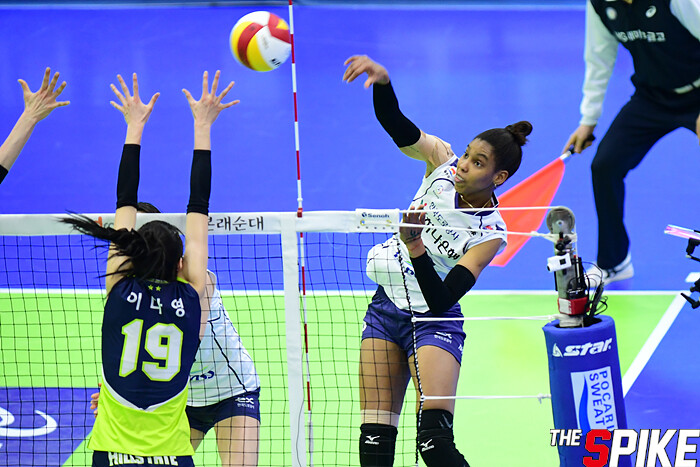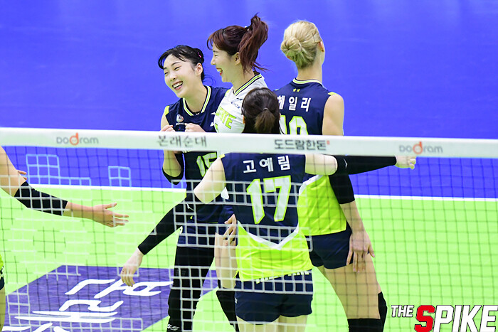 [더스파이크=수원/박상혁 기자] 11일 수원실내체육관에서 열린 도드람 2019-2020 V-리그 여자부 현대건설과 한국도로공사의 경기에서 현대건설이 세트 스코어 3-0 (25-22, 25-17, 25-20) 으로 한국도로공사에 승리했다. 현대건설과 한국도로공사 경기 화보.